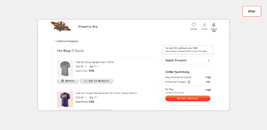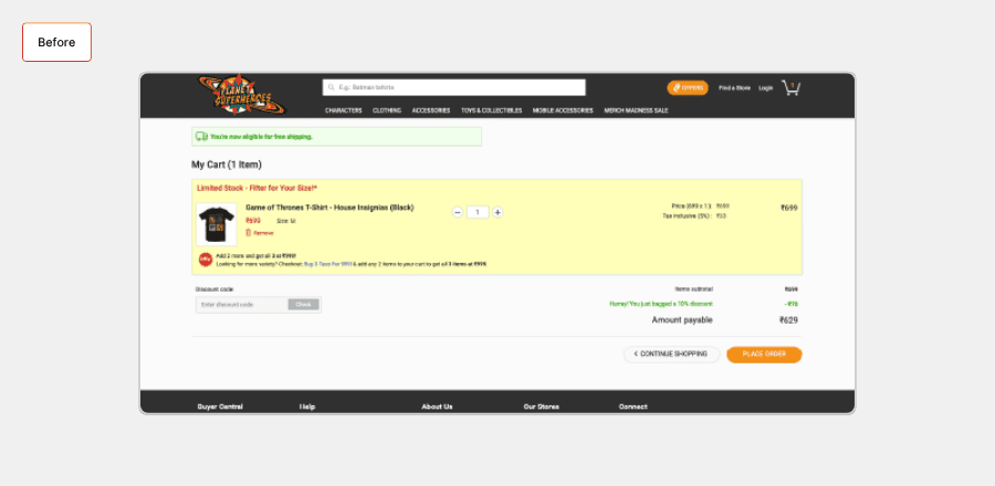 Problem: Analytics revealed high drop-offs at the checkout landing page. User research indicated the multi-step process with account creation requirements was creating friction.