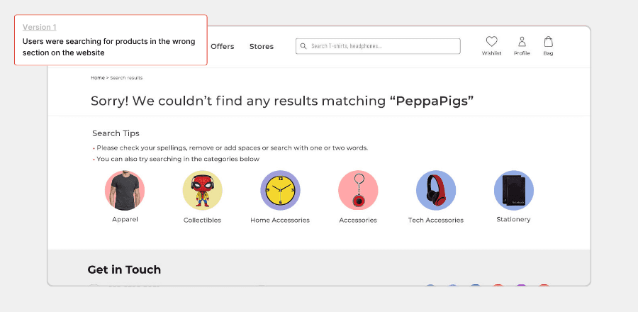 Problem: Hotjar revealed users frequently searching for kids' products on the main e-commerce site, resulting in "no results found" frustration.