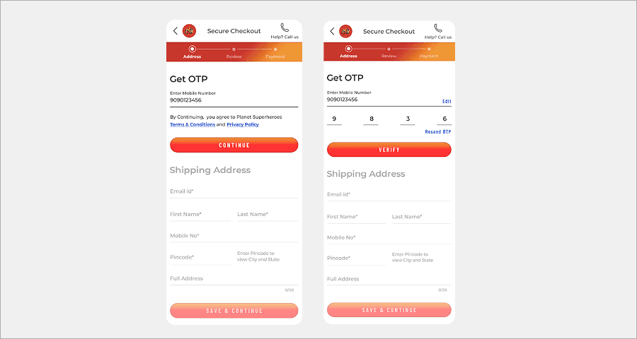 Replaced traditional username/password login with one-time password (OTP) authentication via mobile number at checkout — reducing cart abandonment from forgotten credentials and streamlining the purchase flow.